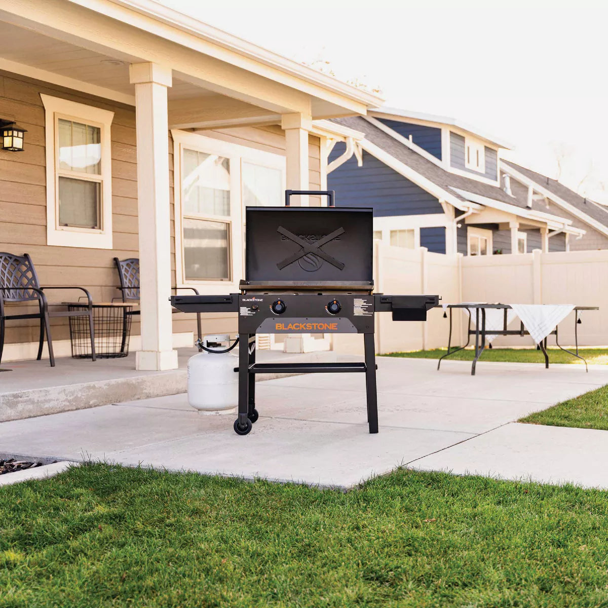 Ignite your passion for outdoor cooking with the Blackstone 28 In. Omnivore Griddle with Hood. Boasting new Omnivore Griddle Plate Technology, this cooking station is more fuel efficient and is more evenly heated by the two independently controlled burners. With two cooking zones, this 28 In. griddle lets you easily prepare all your favorite meals, from hearty breakfasts to savory stir-fries. The hood serves dual purposes – protecting your griddle from the elements as a cover and acting as a basting dome to steam and evenly cook your food. Add your personal touch with the new Side Shelf Accessory Rail System to make your griddle fit all of your needs. Cooking will never be the same once you get your hands on this Blackstone 28 In. Omnivore Griddle with Hood.