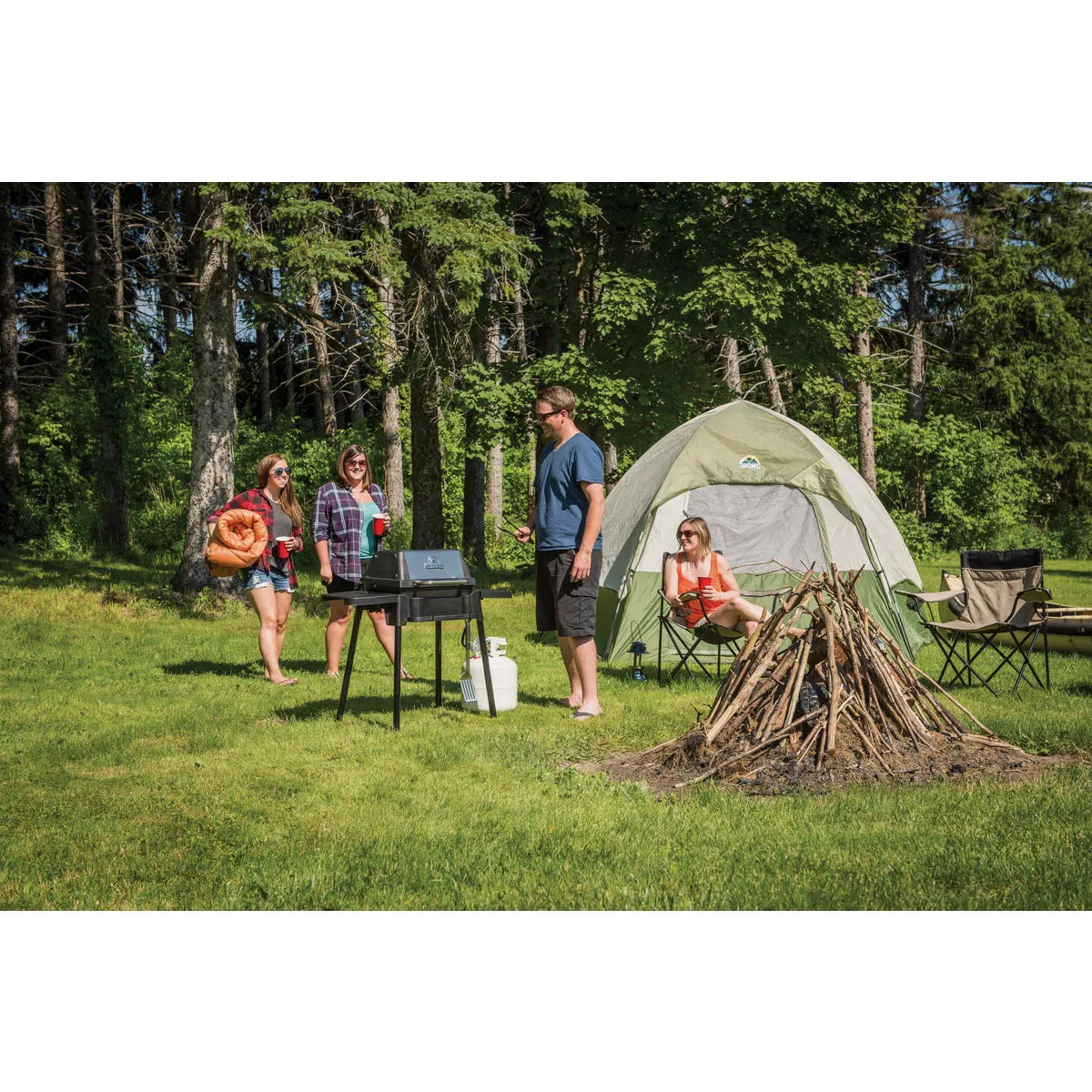 Grilling on-the-go has never been more convenient than with the Porta-Chef 120. Features stainless steel burners, 348 Sq. In. total cooking space, thick cast aluminum cook box, porcelain coated steel wire cooking grid, stainless steel Flav-R-Wave cooking system, 14,000 BTU (British Thermal Unit) (main burner), Sure-Lite ignition, and Accu-Temp thermometer. Also includes detachable, snap-in legs for easy storage and transport. 5-year warranty on burners, 10-year warranty on cook box.