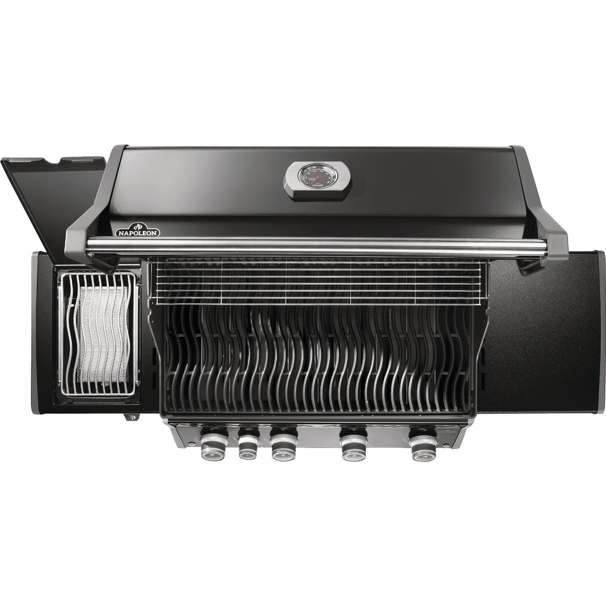 - Durable black porcelain enamel lid and doors with black powder coat control panel and side shelves stand up to any weather and don’t show fingerprints