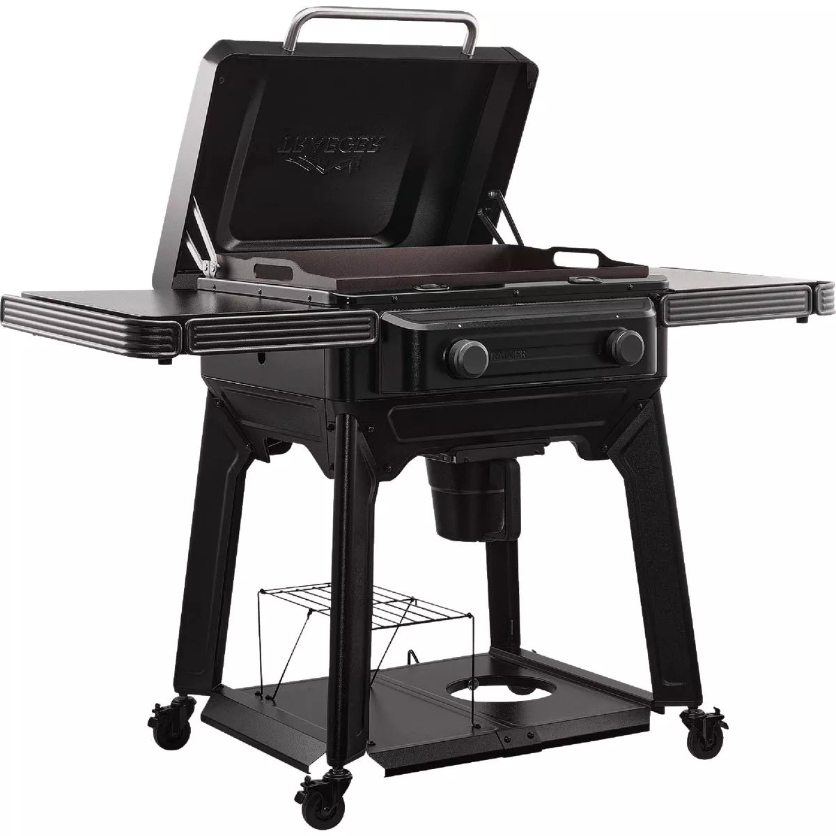 Explore new flavor frontiers with the Traeger Flatrock 2-Zone Grill. This flat top grill opens up a whole new world of griddling, frying, steaming, sauteing, and more. It offers the versatility to fire up every meal, gives you superior sizzle and deeper flavor, and makes cooking fun. TruZone temperature control features three distinct cooking zones separated by HeatShield insulation, allowing you to cook multiple dishes at once with total temperature control. FlameLock construction blocks wind and keeps heat where it should be for better fuel efficiency and more burn for your buck. Plus, innovative U-shaped burners ensure consistent heat distribution across the entire cooktop surface, so you can use every square inch. Other features make it easy to clean and customize your grill.