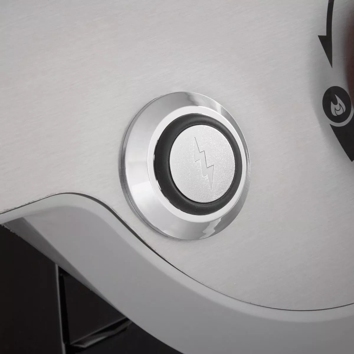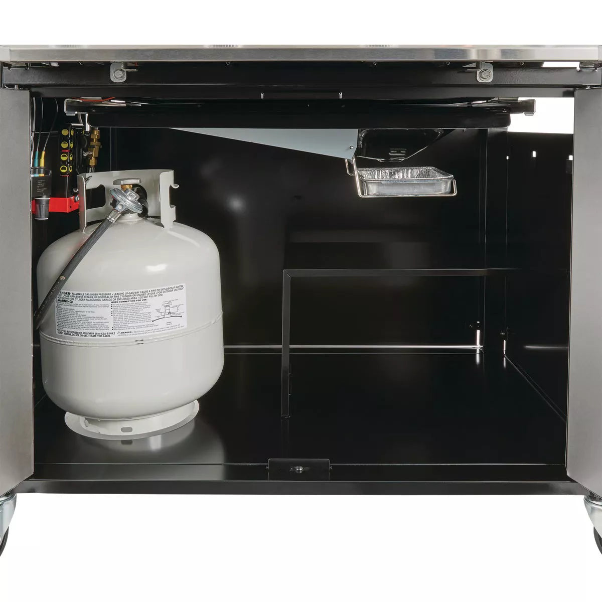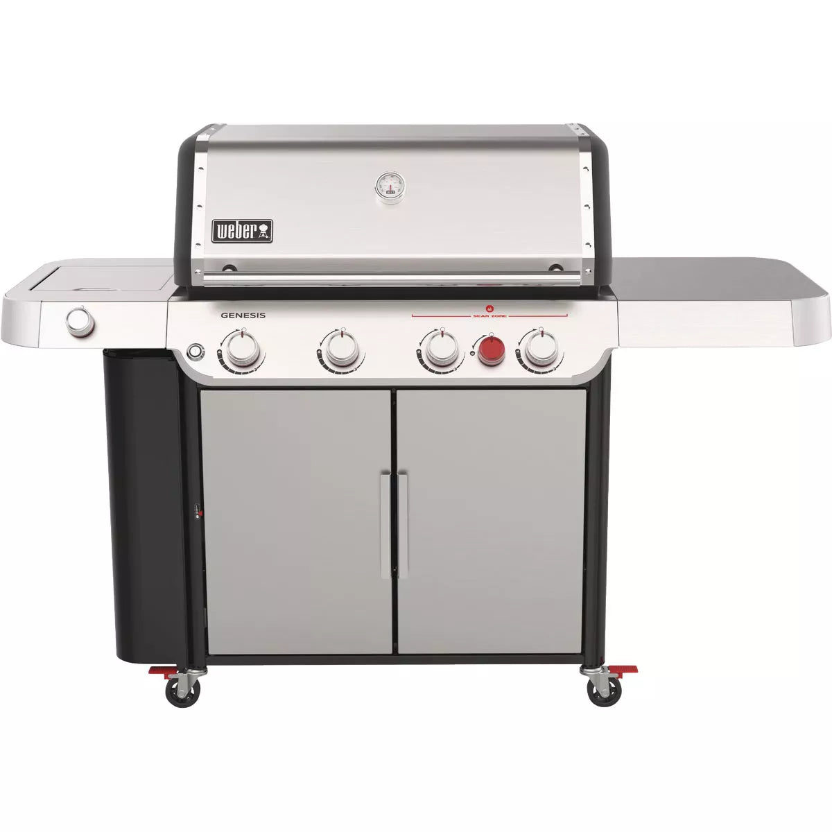 Genesis S-435 LP (liquid propane) gas grill with sear and side burner. Innovative design that creates a full backyard culinary experience. Ideal to grill, bake, and even stir-fry. Compatible with the Weber Crafted Outdoor Kitchen Collection which provides limitless culinary possibilities, enabling you to cook food never thought possible on the grill. Also features a large and hot sear zone, along with an expandable top cooking grate so you are able to cook a full restaurant quality meal outside, where the party is. Includes 39,000 main burner BTU (British Thermal Unit), 12,000 BTU sear burner, 12,000 BTU side burner, 7mm stainless steel cooking grates, and stainless steel lid and doors. Side storage included as well as it is equipped with the outdoor grilling system integration (frame kit). 12-year limited warranty.